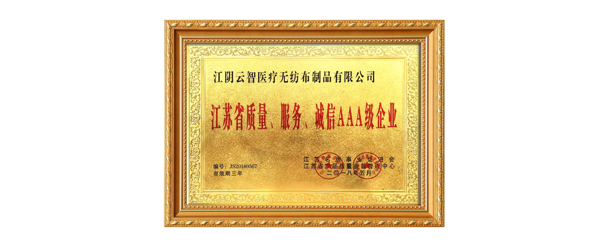 江蘇省質量、服務、誠信AAA級企業